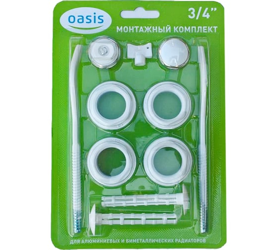 057 Комплект монтаж. рад-ый 3/4″ 11 предм. алюм/бимет (с кроншт) (уп 40) Oasis