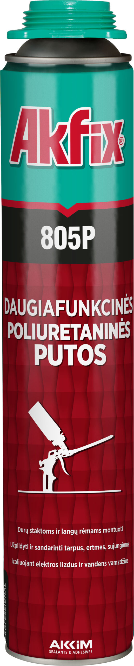 Akfix 805P — однокомпонентная профессиональная полиуретановая монтажная пена. Наносится с помощью пистолета. Обладает большим выходом, легко и удобно наносится, не содержит газов-вытеснителей, вредных для озонового слоя.