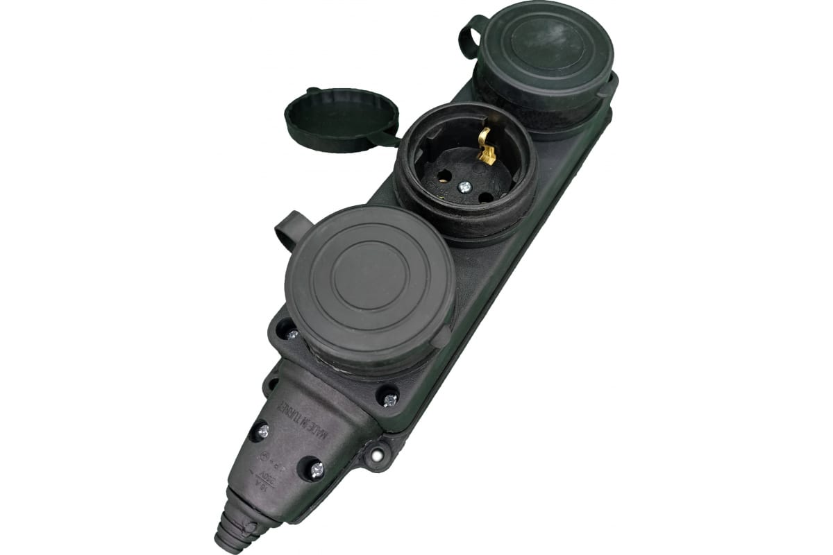 Bull Розетка 3-х местная каучуковая с заземлением с крышкой 338004-1