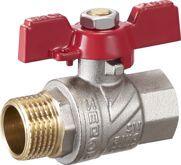 Кран шаровой латунный 1/2″ PN40 (CW617N) полно проходной ручка бабочка подключение гайка-штуцер (БГШ)