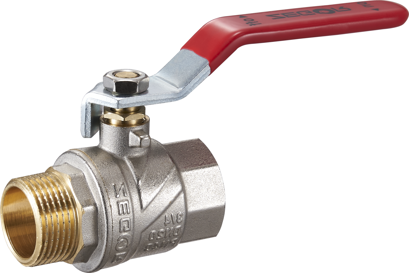 Кран шаровой латунный 1 1/2″ PN40 (CW617N) полнопроходной ручка подключение гайка-штуцер (РГШ)
