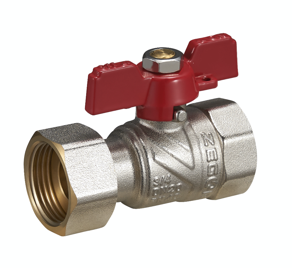 FUB12,Кран шар, прямой латунный 3/4″ (CW617N) полнопрох с накидной гайкой бабочка Г-Г (уп 120/20)