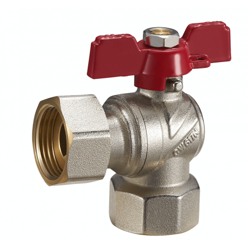 FUBL11,Кран шар угловой лат. 1/2″ (CW617N) полнопрох. с нак. гайкой бабочка БГГ (уп 120/20)
