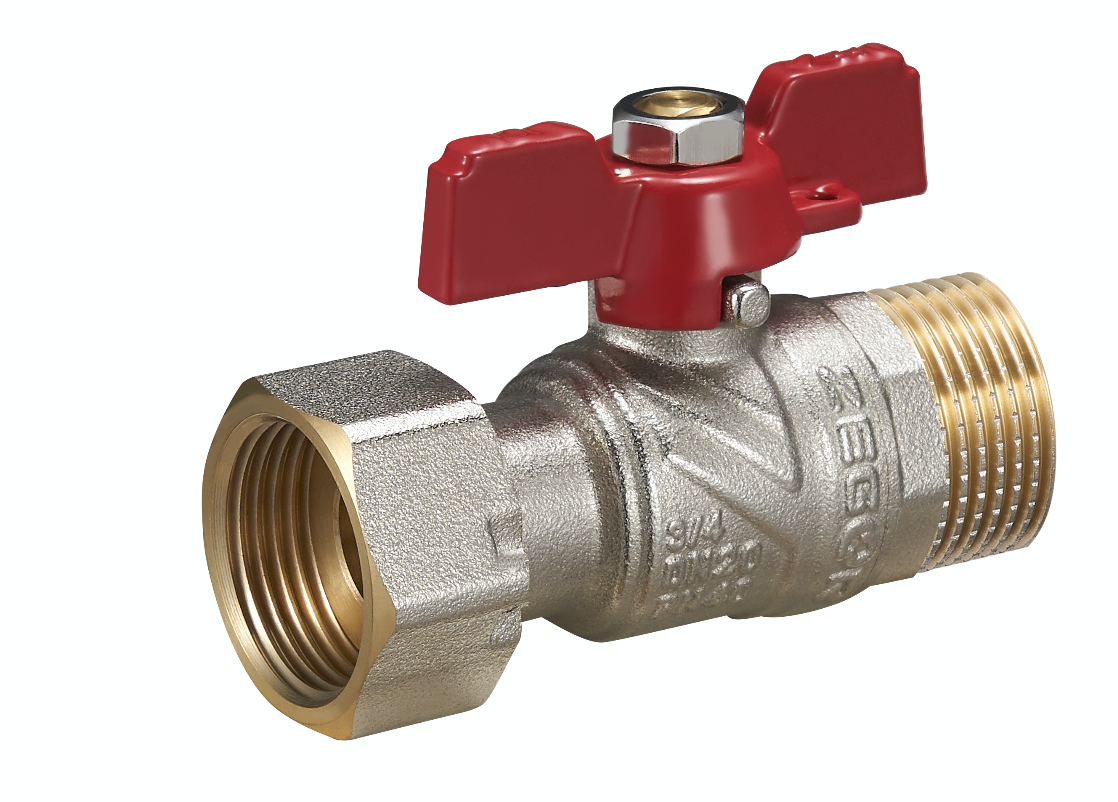 Кран шаровой прямой латунный 1/2″ (CW617N) полнопроходной с накидной гайкой бабочка подключение гайка-штуцер (БГШ)