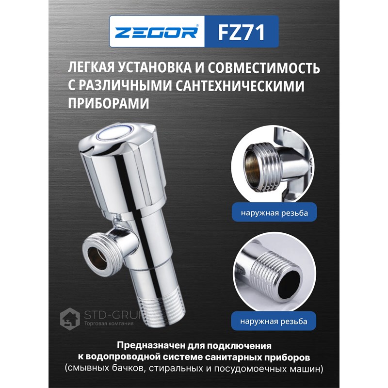 FZ71 Кран приборный регулировочный для подк сантехнических приборов 1/2″х1/2″ нерж хром (100)