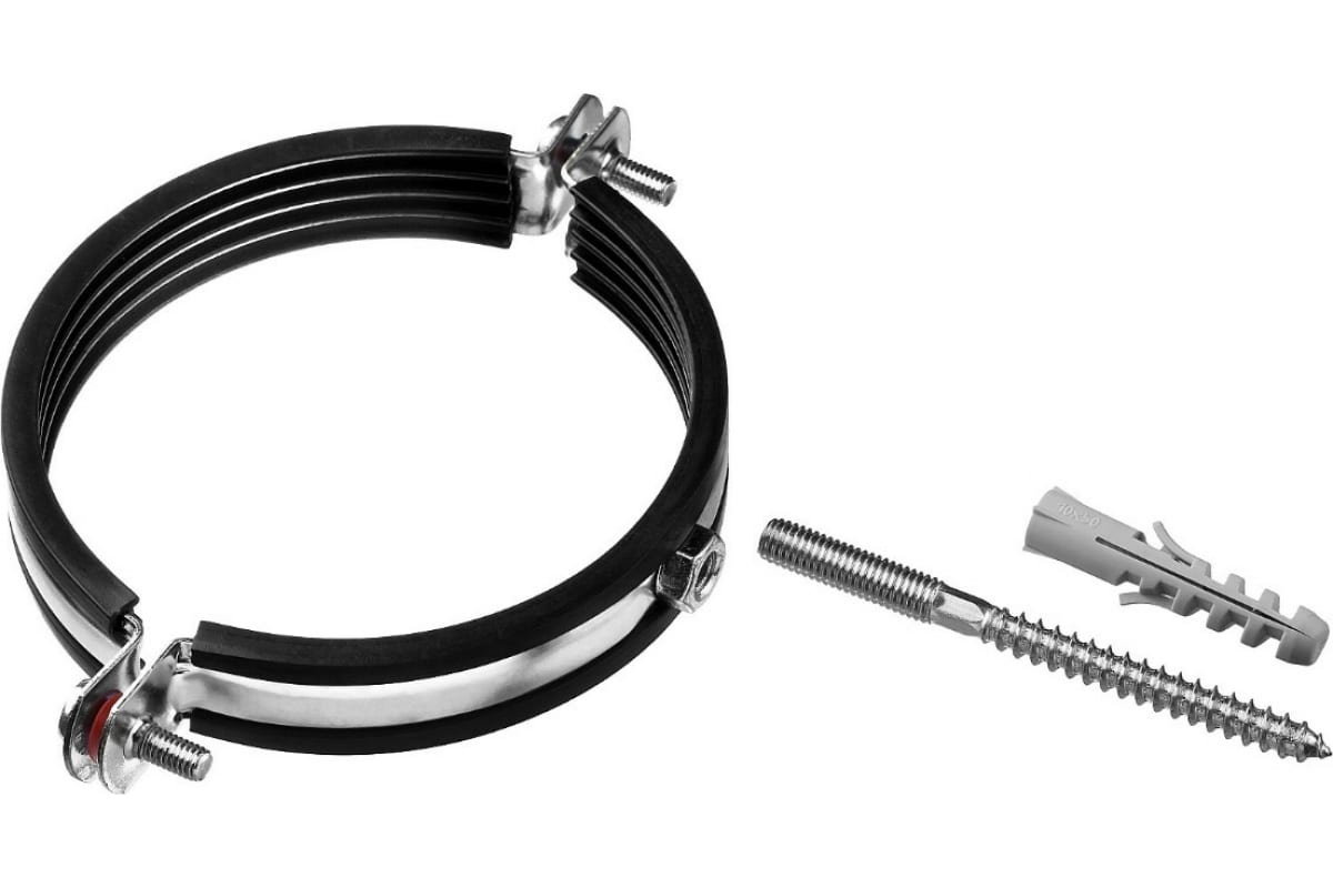 Хомут сантехнический (4″) 107-116 гайка М8 с прокл болтом и дюбелем 80 шт