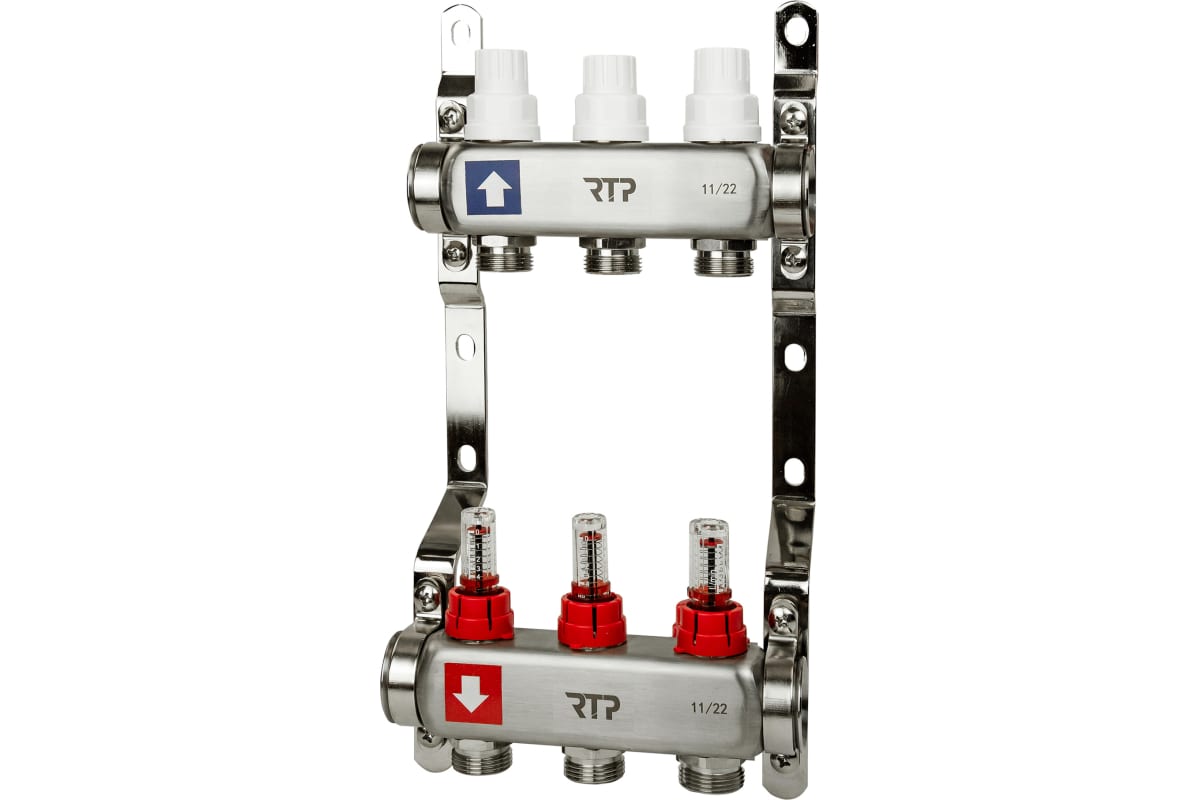 Коллекторная группа с расходомером и кронштейном 1″х3/4″х3 вых 39414 (5/1) RTP