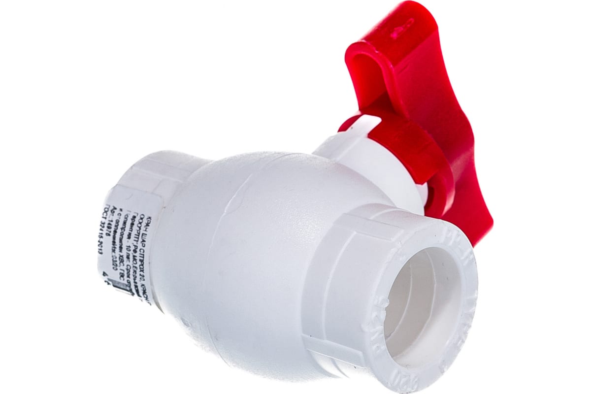 Кран шаровой PPR 20 бабочка красный, белый, РТП 14976 (80/10)