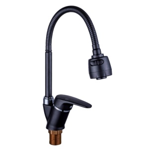 *P58-277-19 Смеситель для кухни 40 мм с гибким изливом, крепление гайка (черный)
