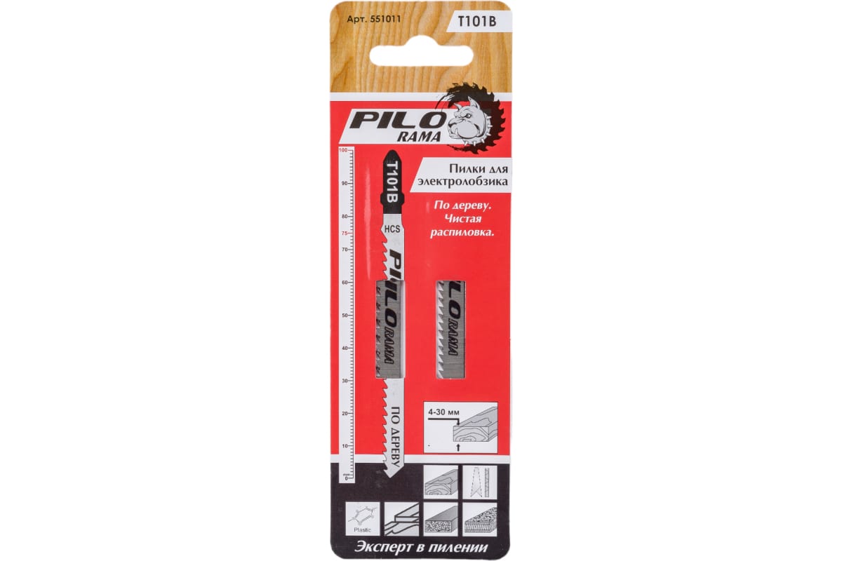 Пилки для лобзика 100×75мм 10з/д (древеес, ДСП,пласт. h=4-30мм) Т101В 2шт/карта 551011