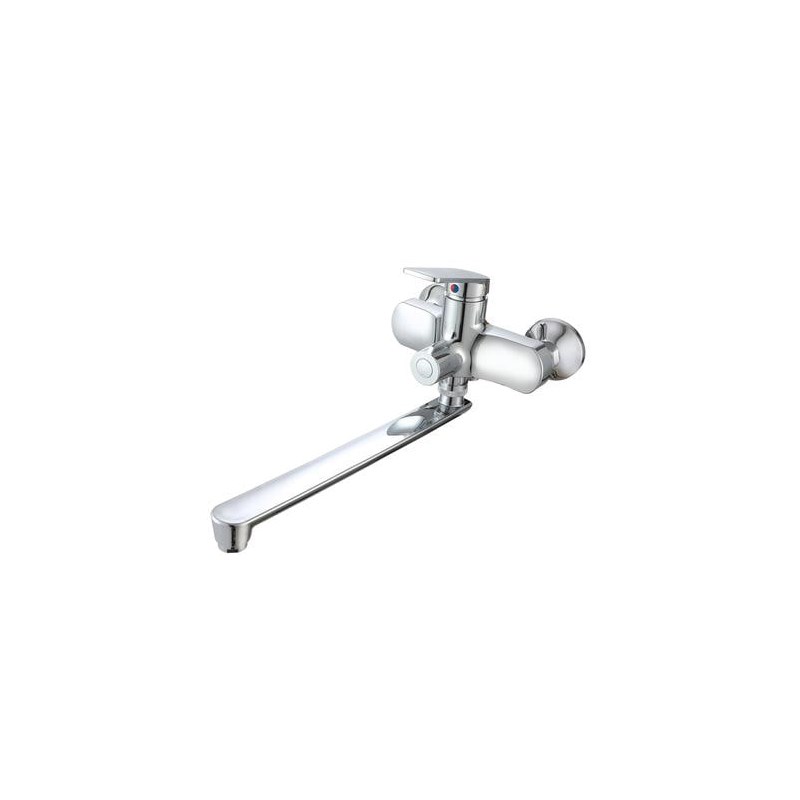 См-ль для ванной, технология производства литьё под давлением, материал корпуса пластик (ABS), с пов. плоским изливом 360°, картридж ø35, покрытие хром, встр. в корпус картриджное переключение на душ