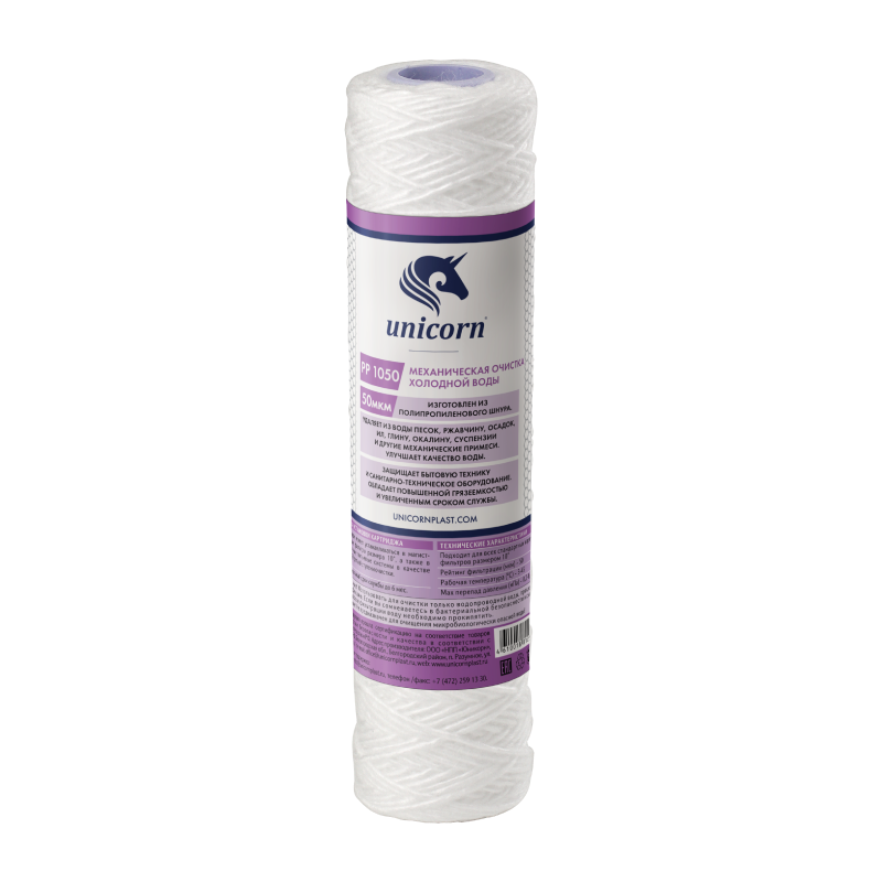 PP 1050 Unicorn,Картридж механический из полипропиленового шнура 10″50 микрон РР1050 Unicorn (уп 50)