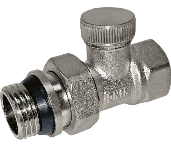 QS-3652,Кран радиаторный прямой нижний, материал корпуса латунь (CW617N) с никелированием, диаметр подключения 3/4“ НВ с антипротечкой, максимальное рабочее давление 10 бар, максимальная рабочая температура 120 °С
