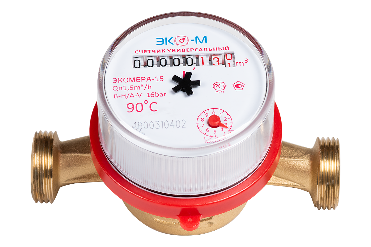 Счетчик водяной ЭКОМЕРА — 15 — 110 универсальный (с комплектом)