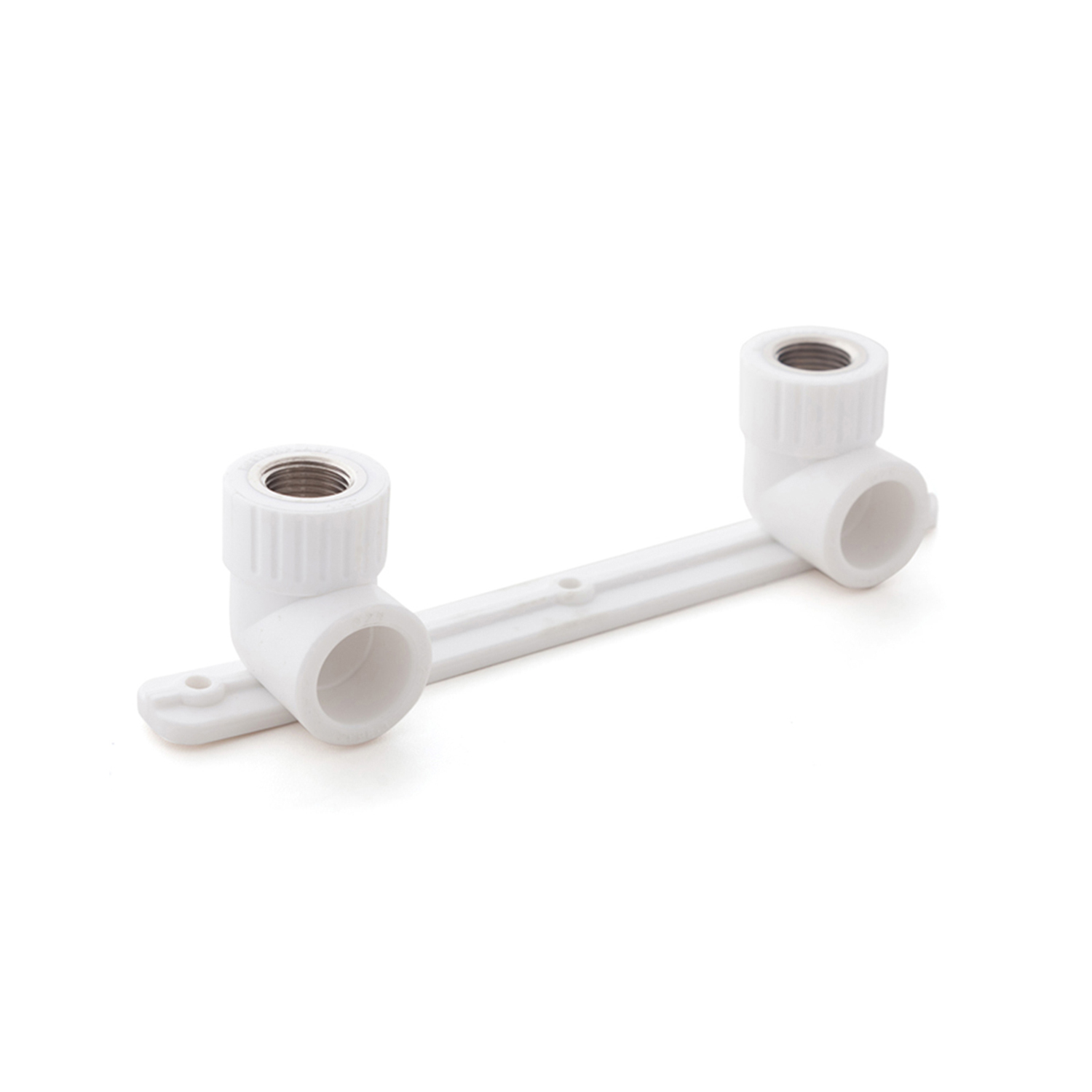Угольник PP-R Ростурпласт комбинированный двойной с внутренней или наружной резьбой — используется при монтаже полипропиленовых труб PP-R во многом облегчает монтаж при выполнении различного рода задач и предназначен для изменения направление водомагистрали под большим углом (к примеру, для обвода различных препятствий), а так же используется для присоединения к основной трубе различного сантехнического оборудования. Одно из основных преимуществ-это возможность жесткого крепления к стене и любой другой поверхности. Угольник PP-R двойной комбинированный с креплением изготовлен в соответствии с ГОСТ 32415-2013 и может выдерживать давление до 25 бар. Закладные детали выполнены из высококачественной латуни типа ЛС-59-2 с пониженным содержанием свинца.